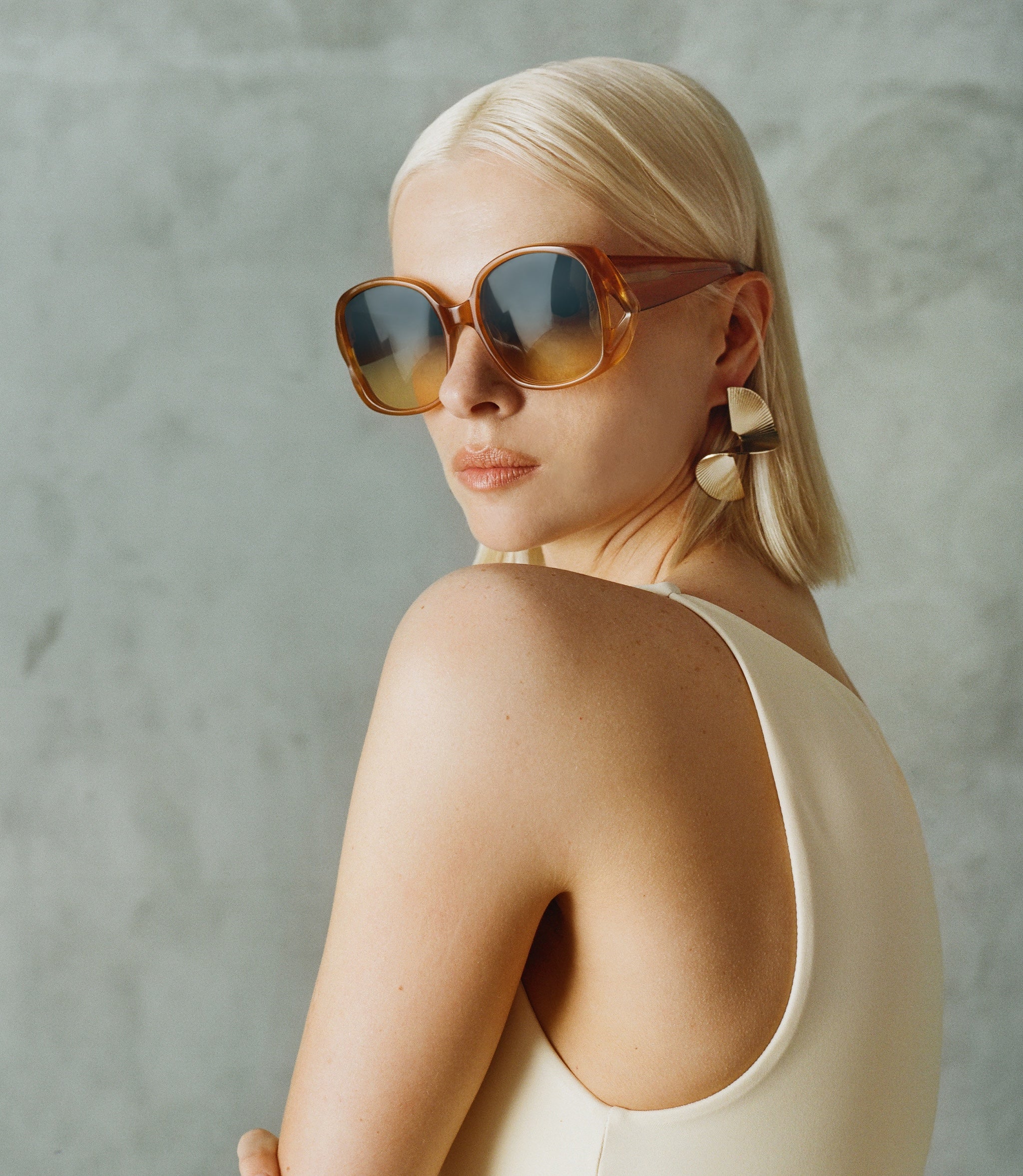 Sculpted from premium Japanese acetate, the 007 Shade features soft contours, subtle ombré lenses, and a sleek temple aperture detail—an homage to the striking forms found in Bond villain lairs.