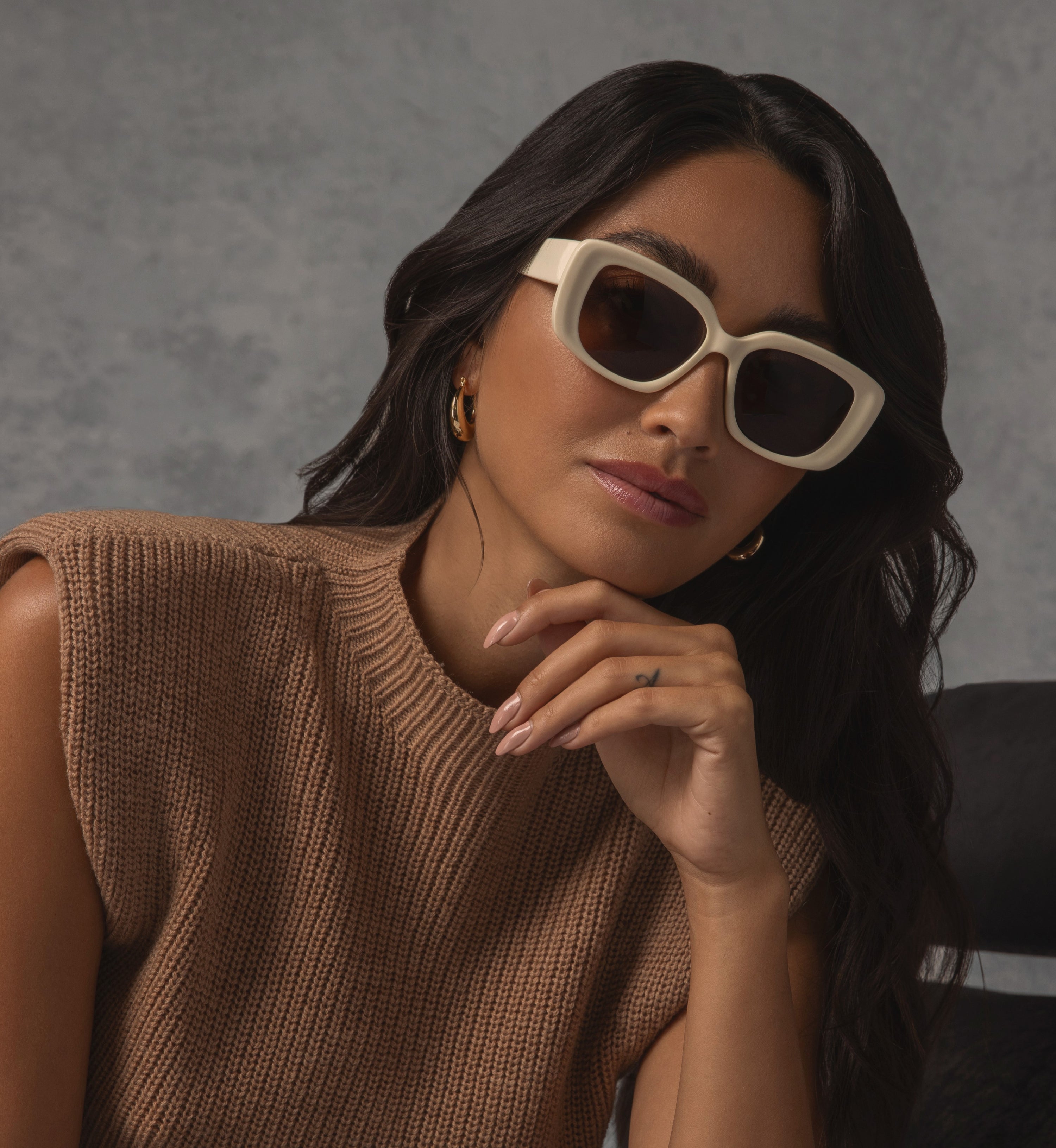 This chic rectangular sunglass pulls inspiration from the Pop Art movement of the 1960s. The reinterpretation of this timeless shape transcends many fashion moments from past to present. The Binti showcases distinctive beveling and the use of laminated materials, imparting a fresh and unique perspective to an iconic design.