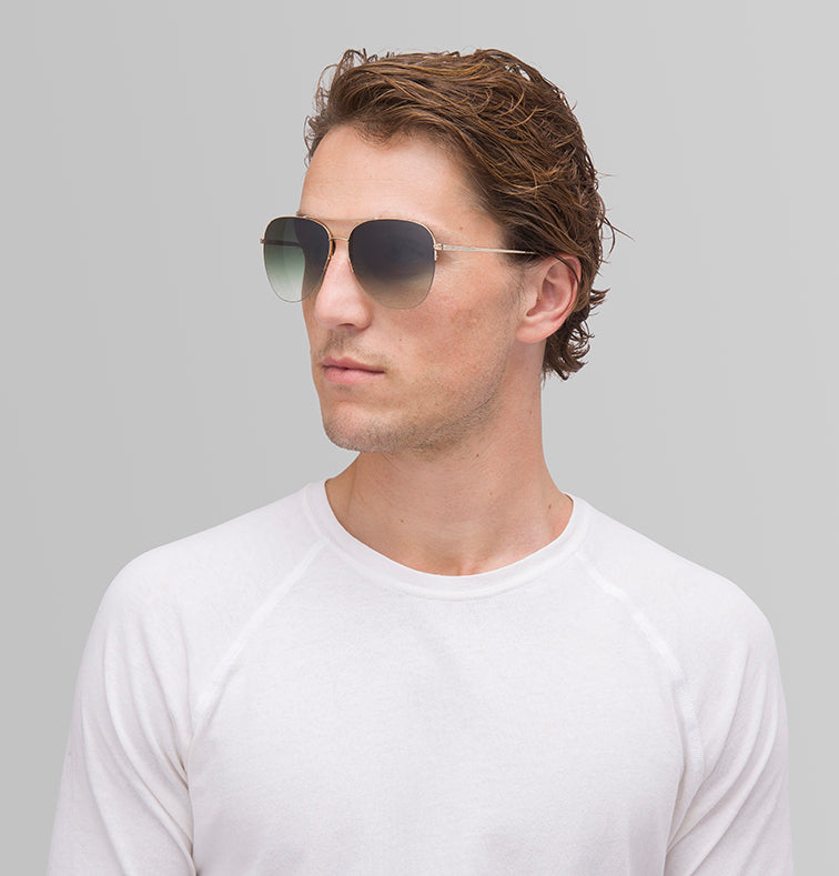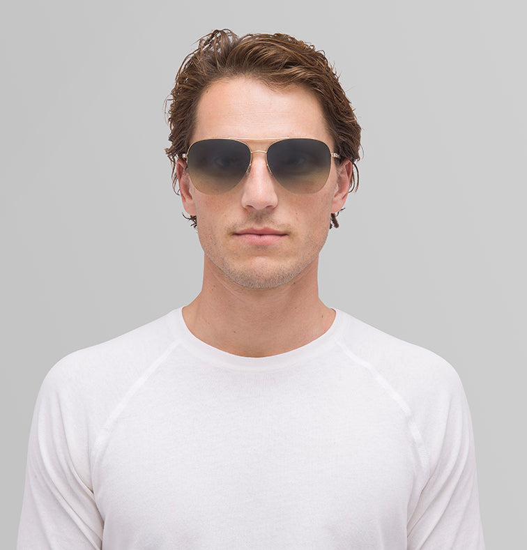 Channel a rebellious look in the sleek aviator-style Chevalier. This universally flattering style is complete with thoughtful detailing, like intricate filigree etching at the double bridge and signature Barton Perreira engraving at the temples.