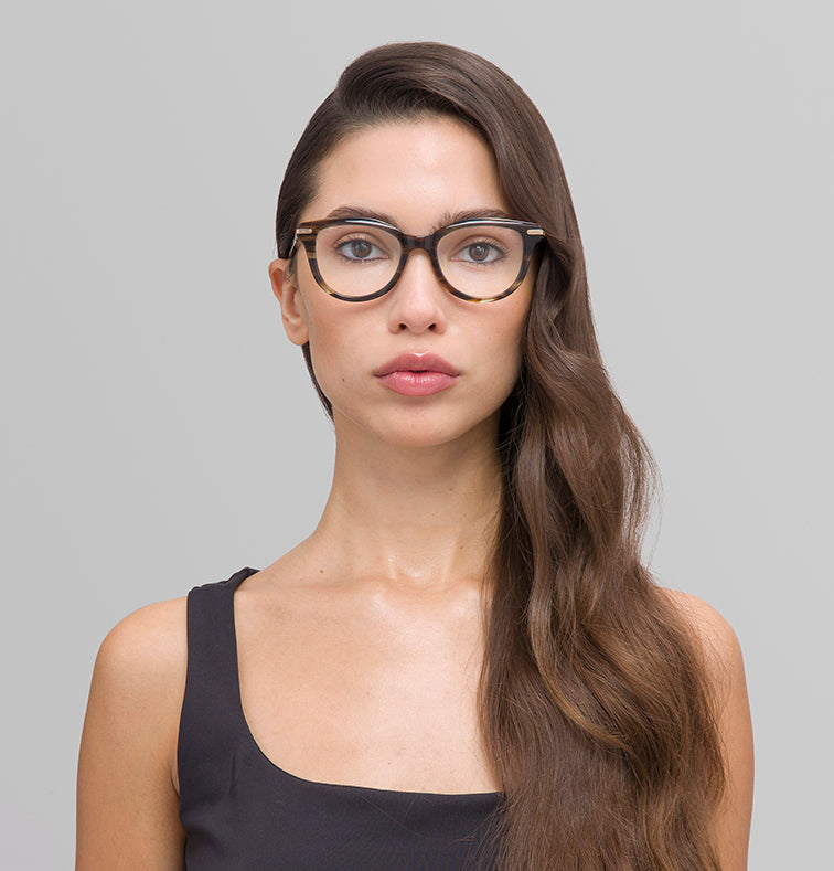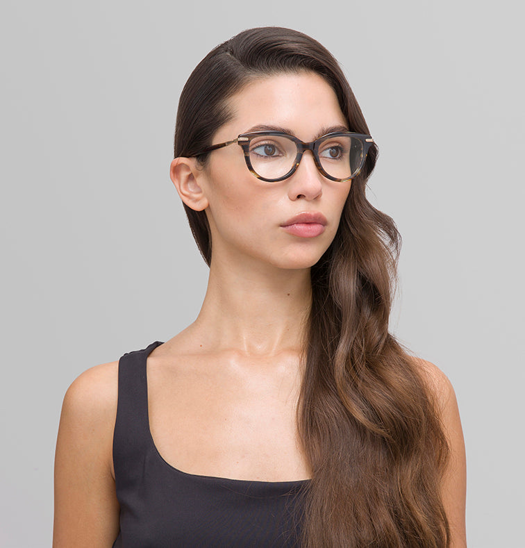 This refined cat-eye fuses fearlessness with grace. Meticulously crafted in Japanese polished acetate with a titanium filigree detail at the endpiece and temple.