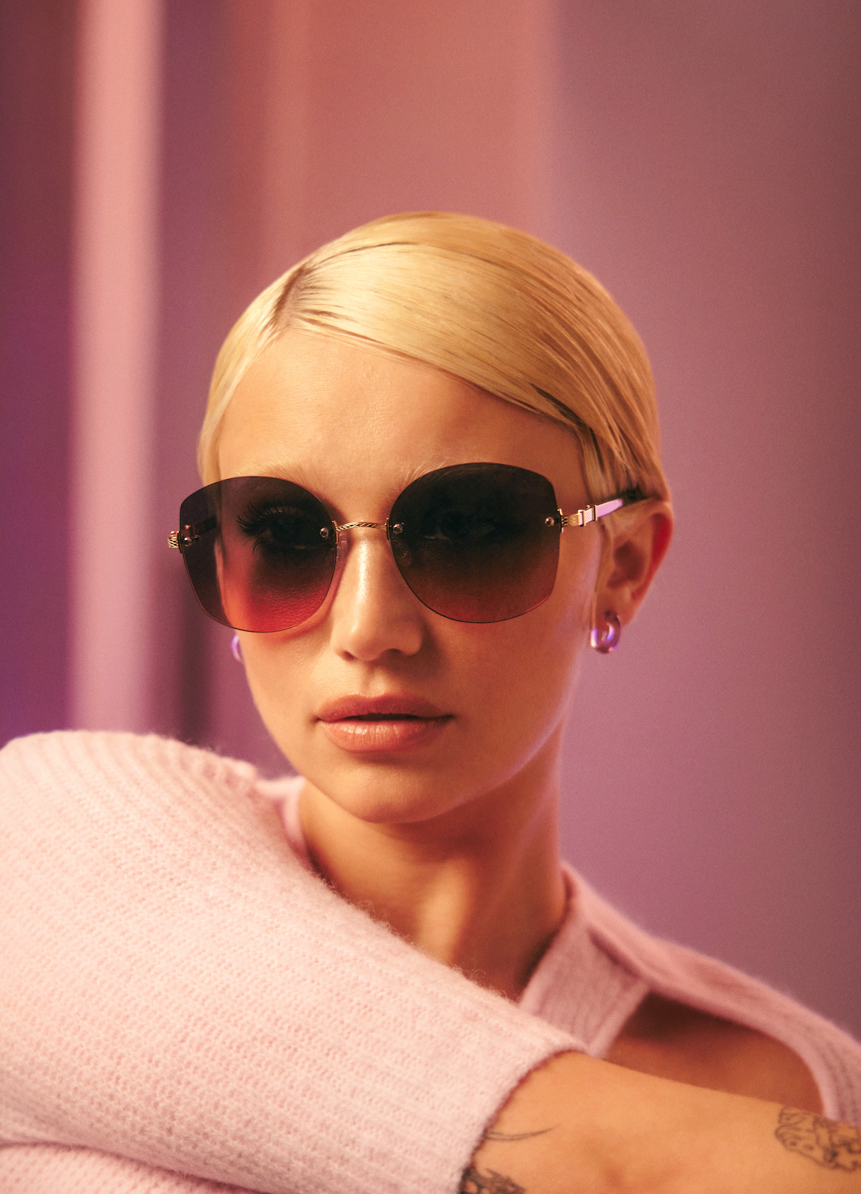 The glamorous Gloria is the oversized style you’ll want to shout about. Shine brightly in sun kissed gradient lenses or turn up the mystery in the Dusk Sunset gradient. Impeccably crafted and adorned with our signature filigree on 24KT gold-plated hardware.