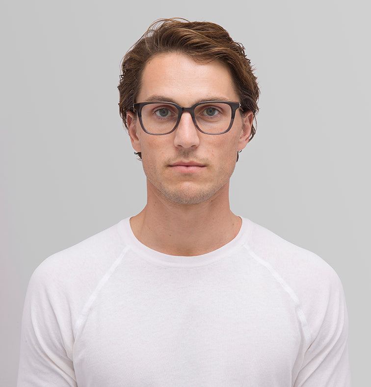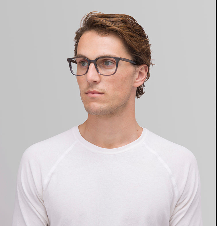 Intensify your look with the angular Joe. Thick acetate frames create a pronounced silhouette and square lenses contribute to the masculine effect. To finish, hand-engraved crosshatch grazes the temples.