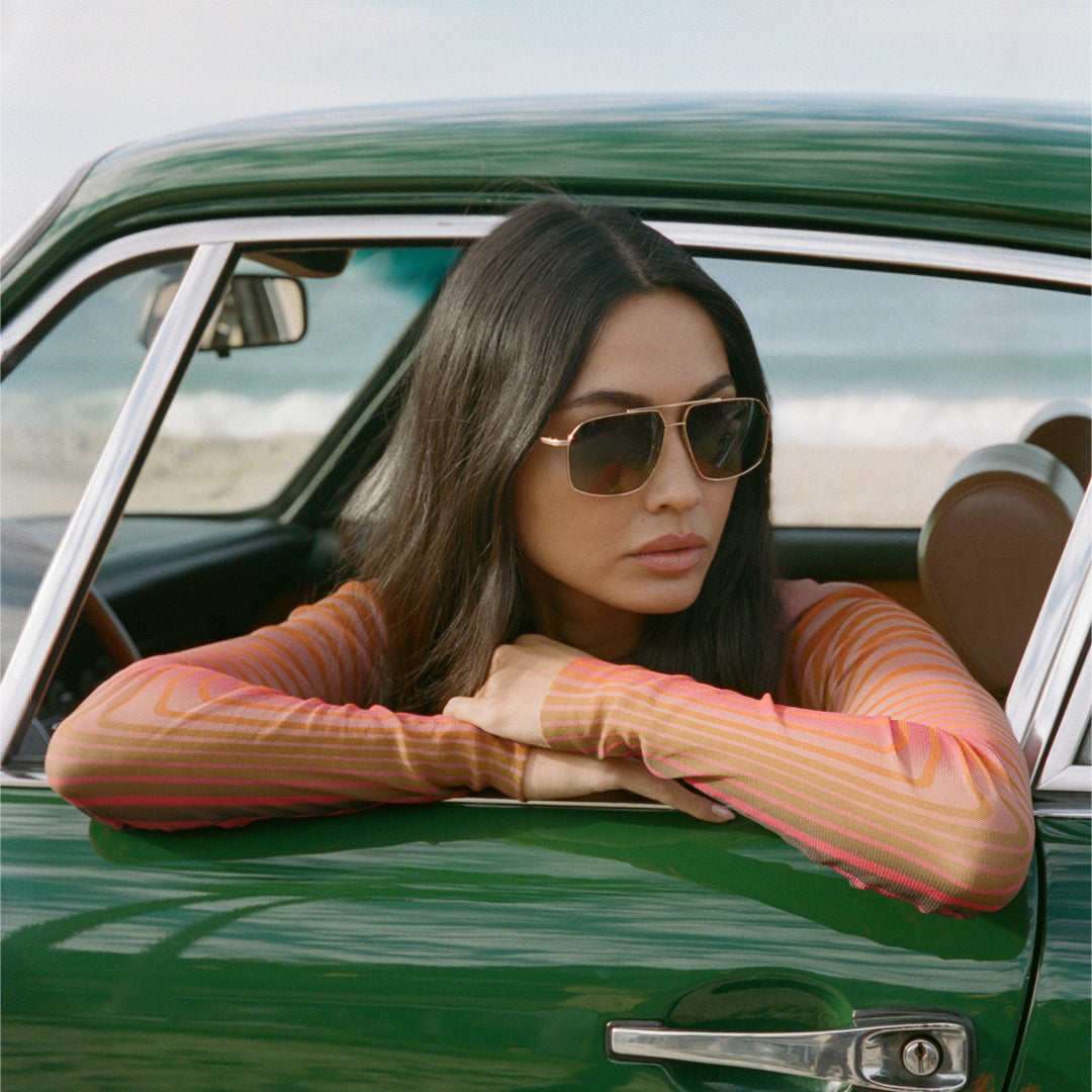 This navigator-style silhouette features an ultra-lightweight titanium frame adorned with architectural angles that form a striking silhouette. Available in polarized lenses, it not only enhances your style but also shields you from the sun’s glare, ensuring a sophisticated look wherever you go.