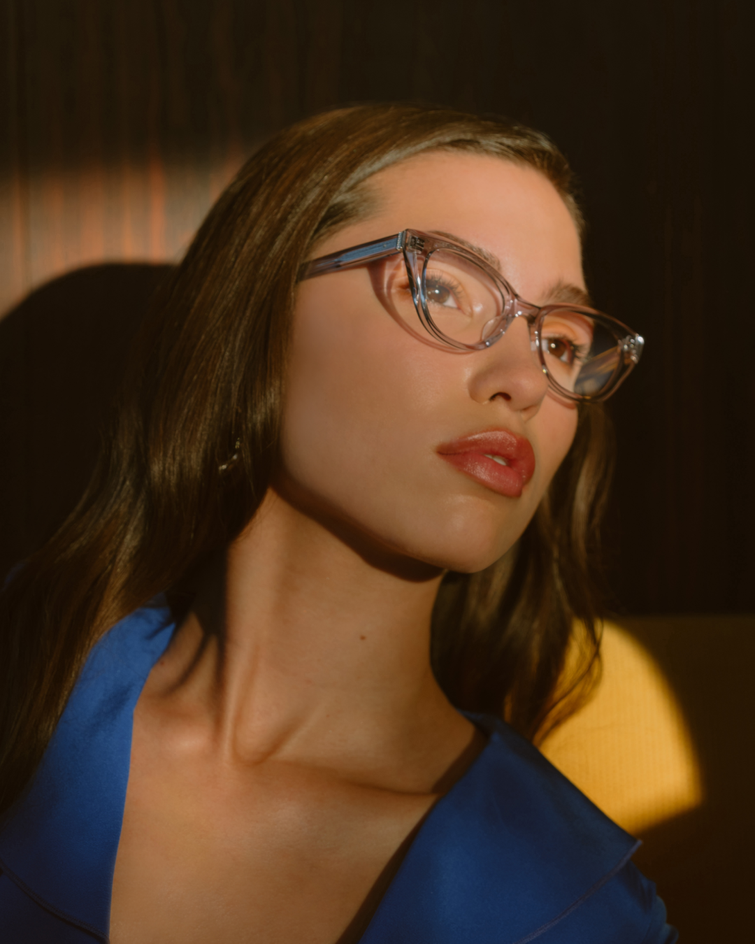 The iconic beveled cat-eye shape exudes feminine elegance in shades of oxblood, clover, and pale blue smoke. It is an impeccably balanced design that will complement your signature style.