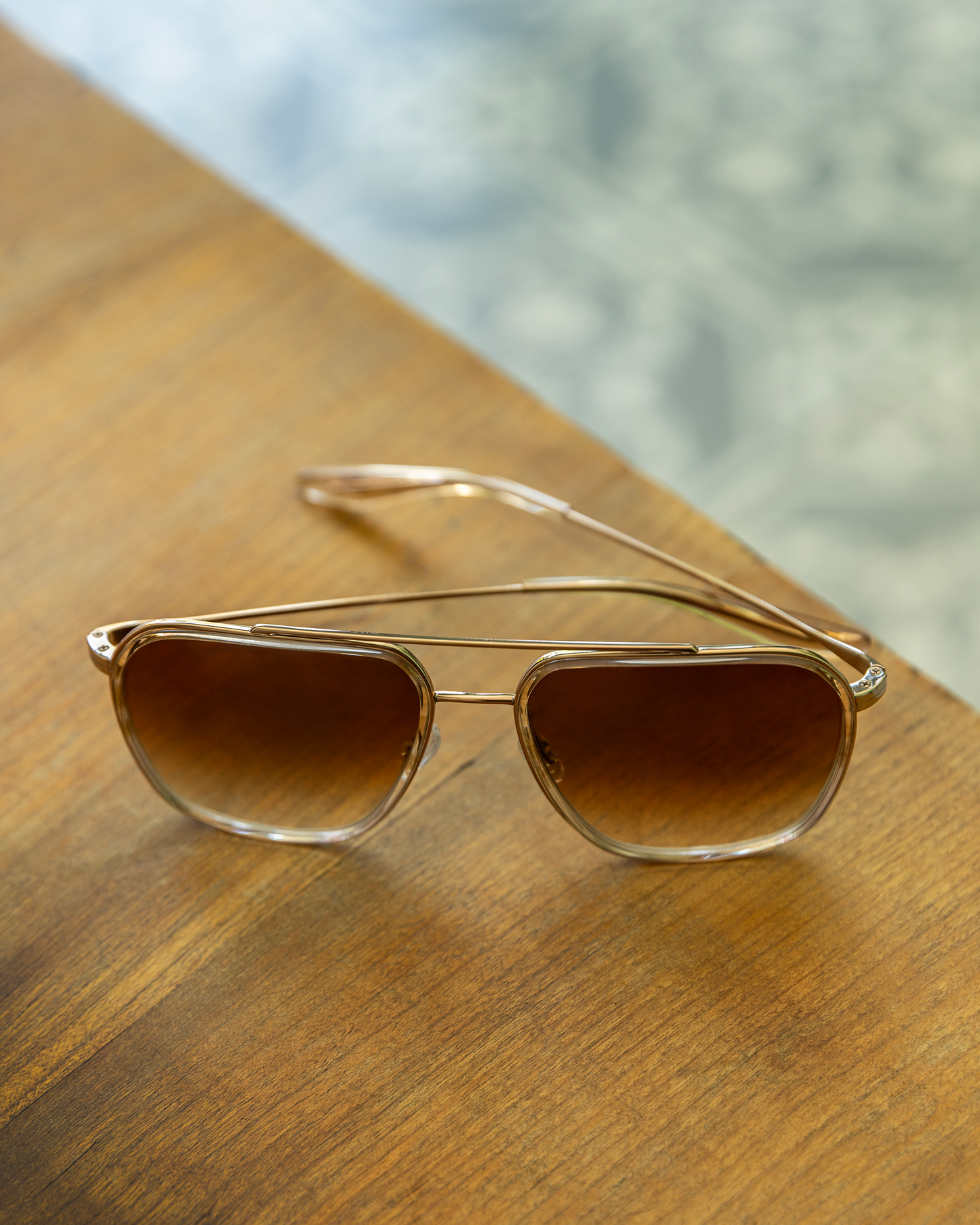 Rizzo is a reimagined navigator that blends technical precision with polished flair. A sculpted arc and softened brow are calibrated for fit, lift, and subtle attitude, while engraved crosshatch temples echo the details of timeless craftsmanship. Rizzo is a modern essential with timeless appeal.